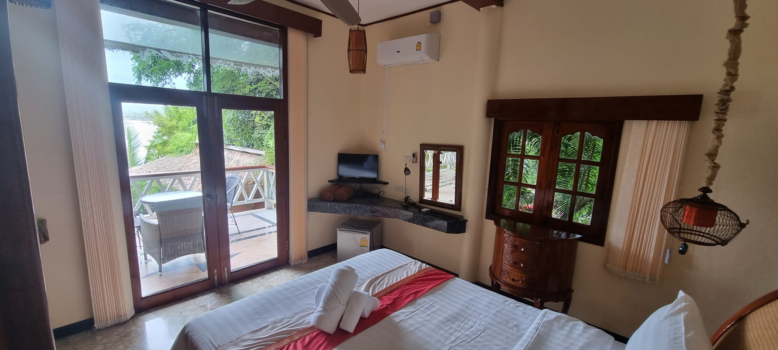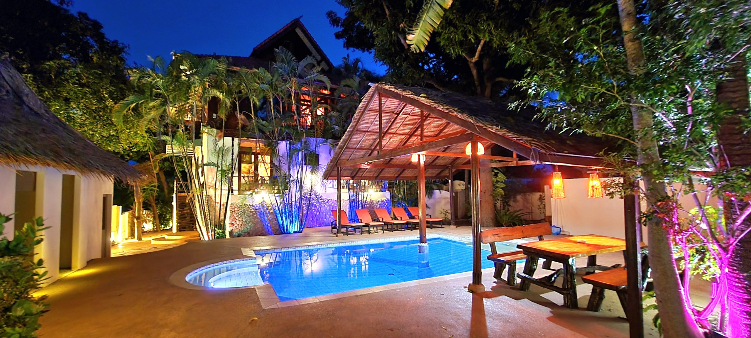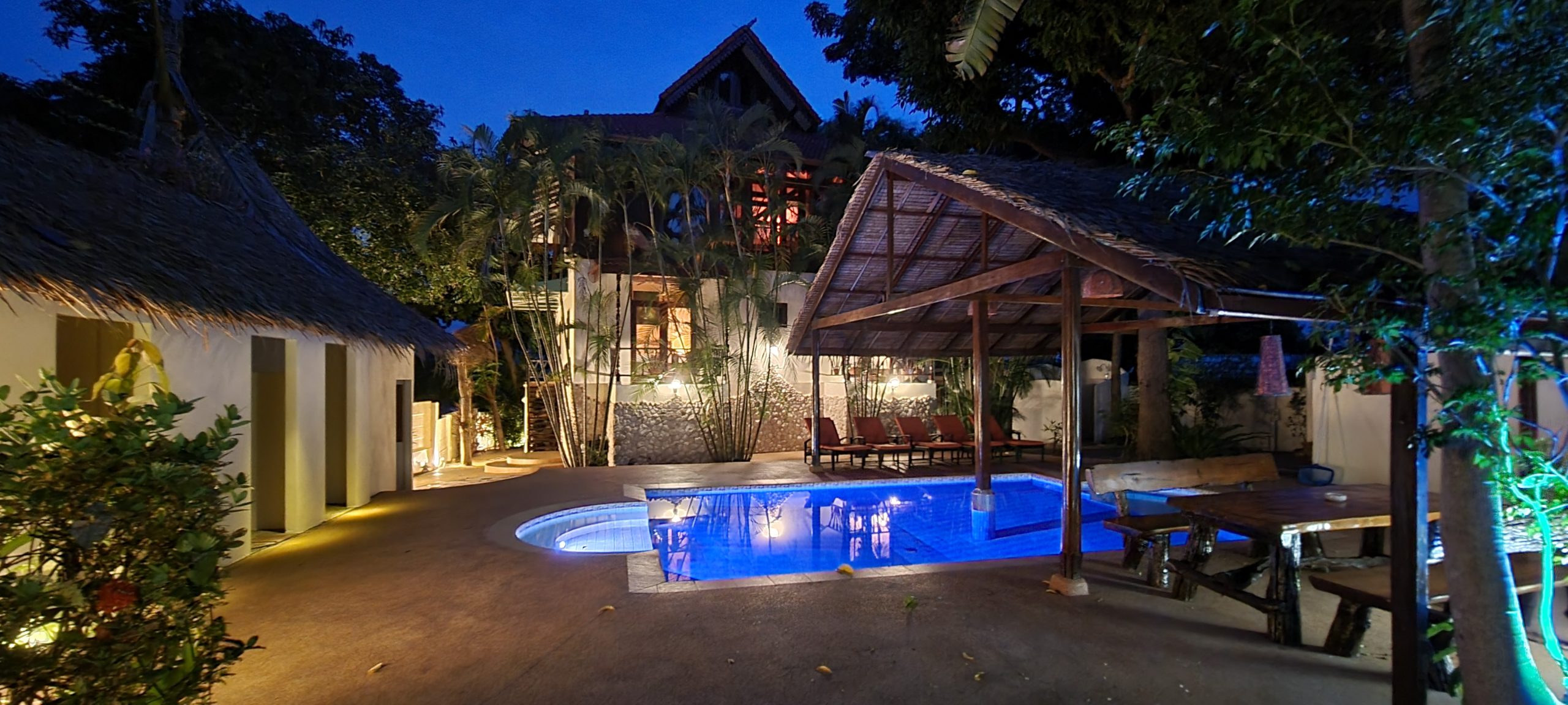 The villa Serenity lodge has 7 bedrooms, 6 bedrooms are en-suite with air conditioning, tea and coffee making facilities, fridge and large comfortable double bed. Bedrooms 1 and 2 have terrace and face towards the sea. Bedrooms 3 and 4 have private terrace overlooking the main swimming. Bedrooms 5 and 6 are on the ground floor and have views to the sea and our Jacuzzi. Bedroom 7 sleeps 1 person which is on the top floor with panoramic views of Koh Phangan. Serenity Lodge is in a unique location and only a few minutes walk from local shops and restaurants. A perfect retreat on Phangan.