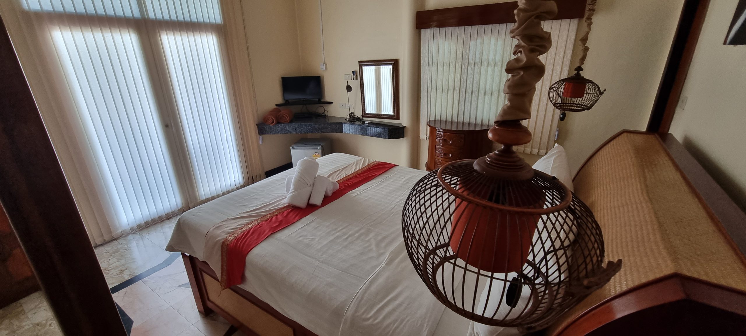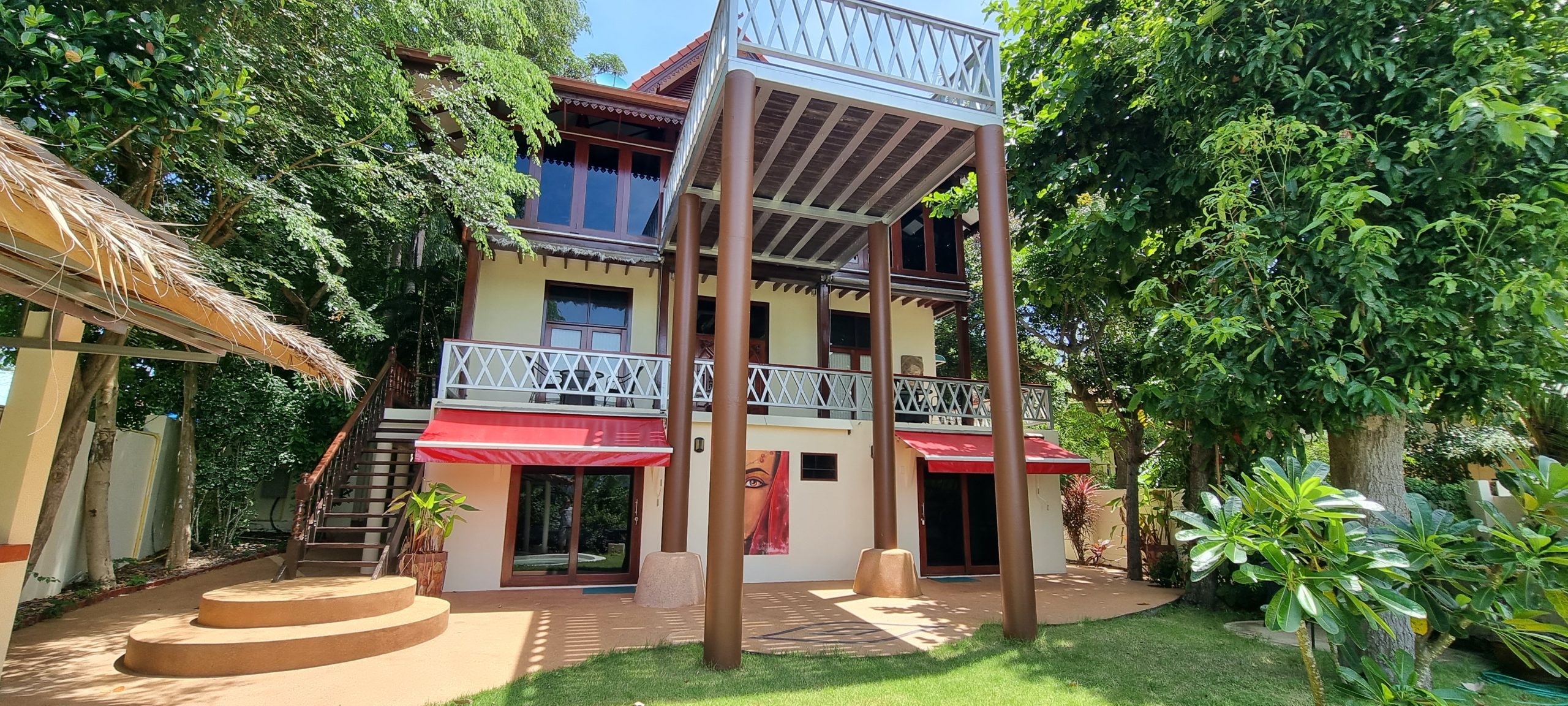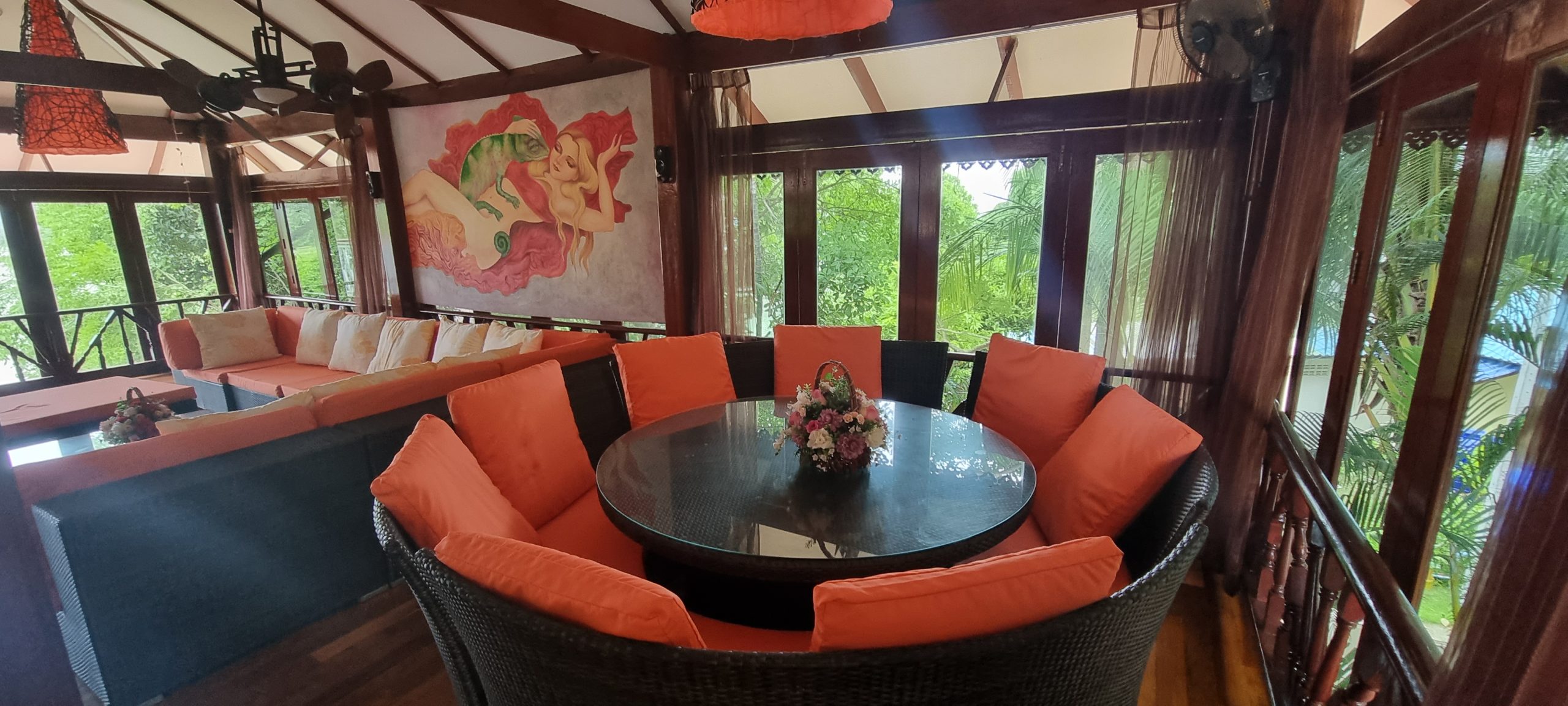 The villa Serenity lodge has 7 bedrooms, 6 bedrooms are en-suite with air conditioning, tea and coffee making facilities, fridge and large comfortable double bed. Bedrooms 1 and 2 have terrace and face towards the sea. Bedrooms 3 and 4 have private terrace overlooking the main swimming. Bedrooms 5 and 6 are on the ground floor and have views to the sea and our Jacuzzi. Bedroom 7 sleeps 1 person which is on the top floor with panoramic views of Koh Phangan. Serenity Lodge is in a unique location and only a few minutes walk from local shops and restaurants. A perfect retreat on Phangan.