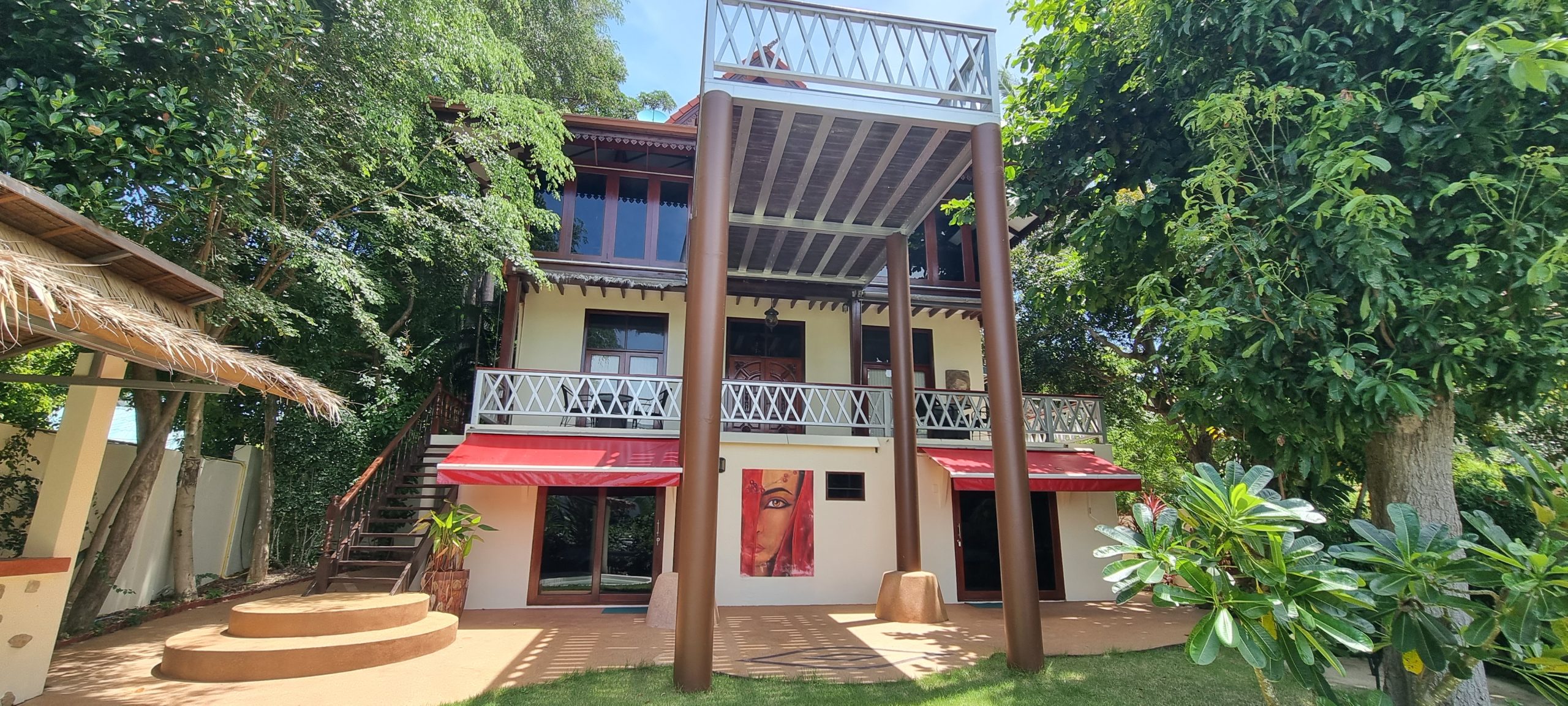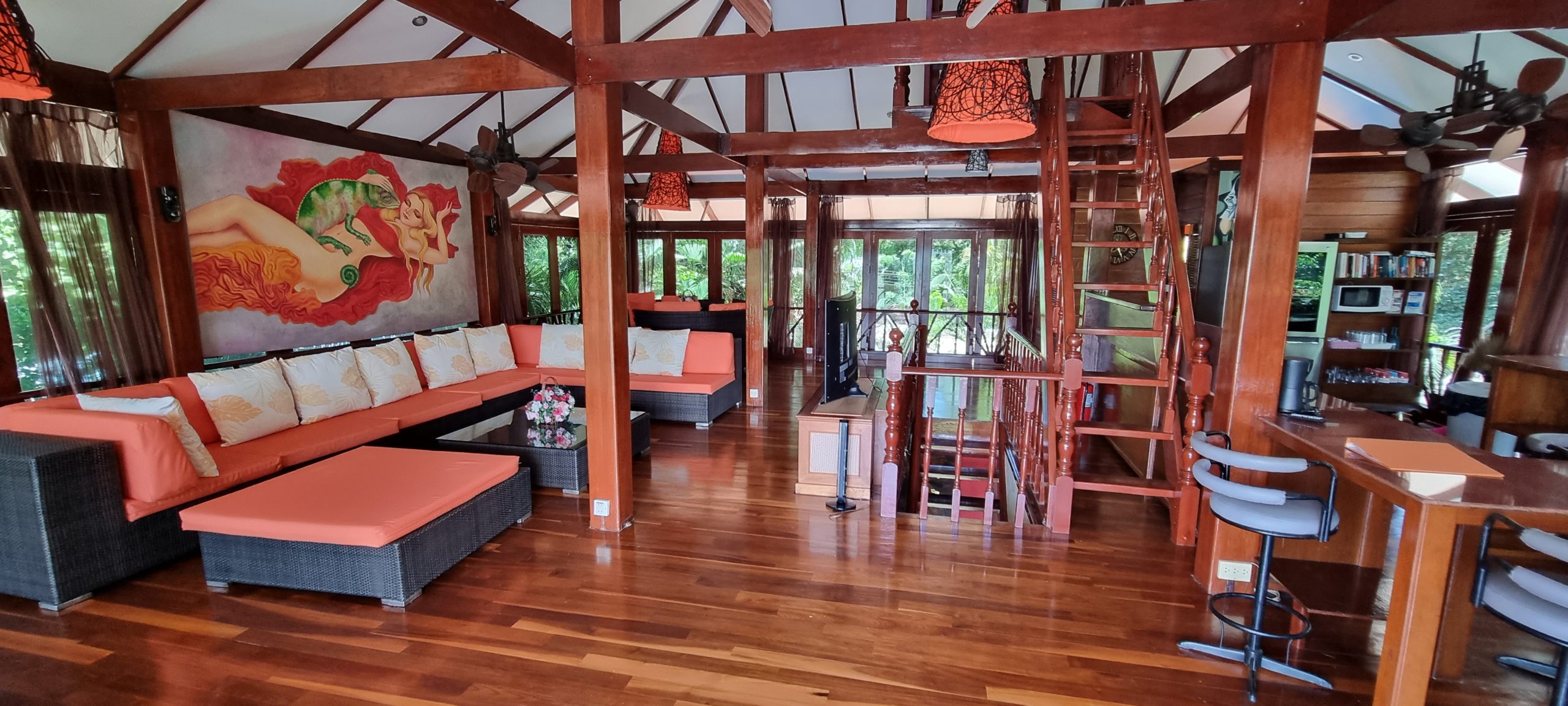 The villa Serenity Lodge is located is a nice quiet area of the Island Koh Phangan part of the Serenity villas, its about a 5 minute walk to a local town called Sri Thanu. Sri Thanu has some shops, bars , restaurants, massage shops and a 7/11.The town of Sri Thanu also has a nice white sandy beach. The villas sits on a hill with a beautiful view across a bay called Hin Kong.